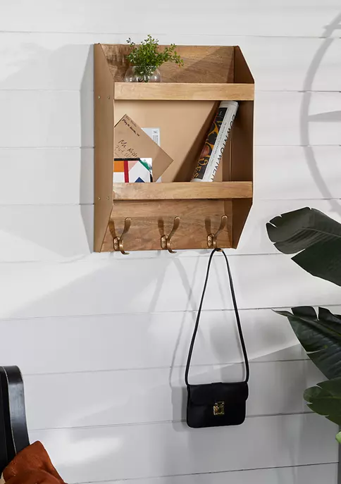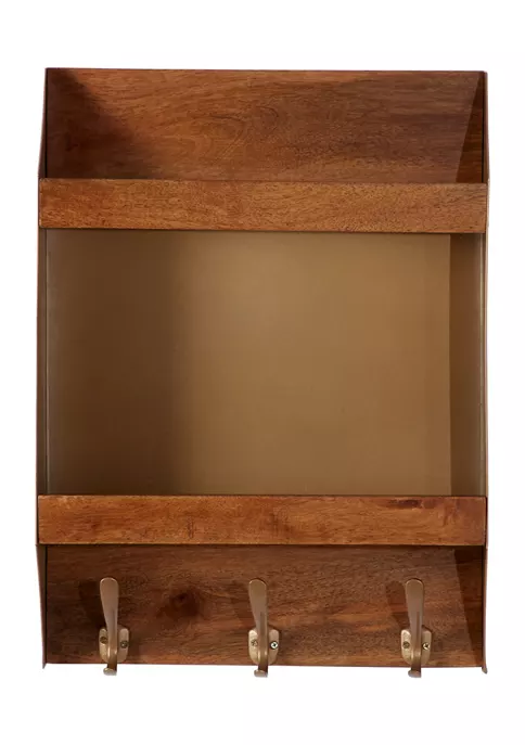 Shelf with hooks measures 16 in L x 5 in W x 22 in H