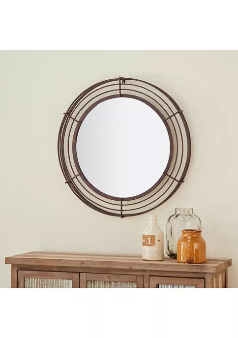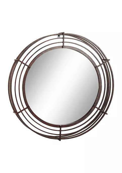 Textural, rustic look with industrial-strength: The bronze hue of the textured black and brown-colored wrought iron bars that form the 3-inch wide frame of this industrial wall mirror promotes the cool, metal feel youโre looking for to fill out accent dรฉcor in your loft or warehouse-style space.