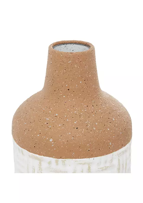 A boho inspired style that exudes creative form with a free-spirited design. Features a round vase made of a pure metal. Features a matte brown finish with natural white outer covering. Transform your natural, modern, and contemporary living spaces with the addition of this stunning matte black metal vase. Each item measures 20.05″ x 6.10″ x 6.10″, and 16.00″ x 6.00″ x 6.00″; and collectively weighs 5 lbs
