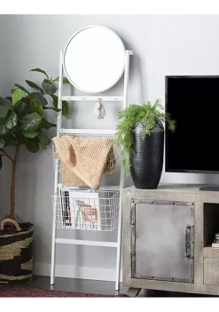 Flash Sale 😀 20 in x 71 in Rectangular White Wood Ladder Mirror Shelf with Baskets by Monroe Lane ✨