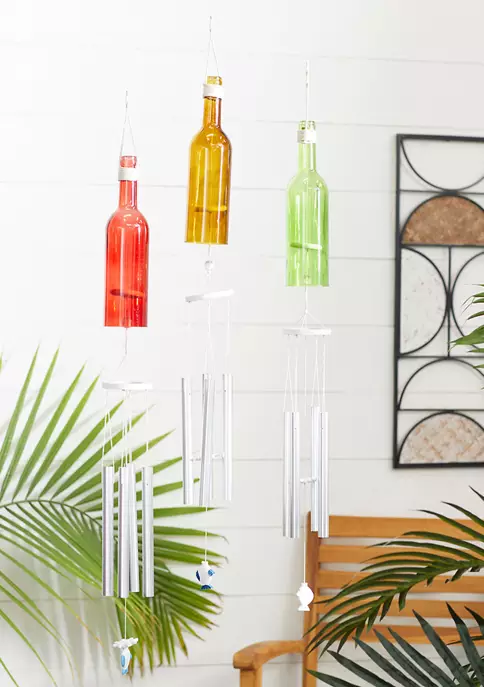 These coastal style inspired design aluminum windchimes will make an excellent set to hang on the porch but can also be displayed near different open windows of the house. Calm your mind and breathe in the ocean breeze as you take a break from your daily life and marvel at the beauty of Mother Nature and her gracious bountifulness. Let the sound of the wind be magnified as they drift into your home’s entryway and tall wooden windows with this coastal-inspired, extra large-sized glass jars windchime! This upcycled home decor showcases a set of three transparent glass jar windchimes in red, yellow, and green finishes. They are designed with four hanging iron tube chimes in a polished silver finish, white cotton strings, and a round white suspension platform made of wood. This item comes shipped in one carton. Items come with hanging strings for easy and secure mounting. Suitable for indoor use. This set includes 3 windchime. Coastal design.