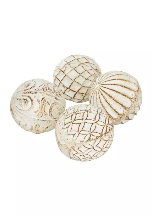 A coastal inspired space is built around the idea of a laid-back, carefree vibe. These decorative orbs are made of solid dolomite. Item features old and white vase fillers set. Their country cottage-themed white and gold exterior make them suitable orb/vase fillers for any color scheme. Measurements: 3.9″L x 4″W x 3.95″H, 4″L x 4.05″W x 4.15″H, 3.95″L x 4″W x 4″H, 3.95″L x 4″W x 4″H; weight: 0.7, 0.39, 0.47, 0.42 lbs