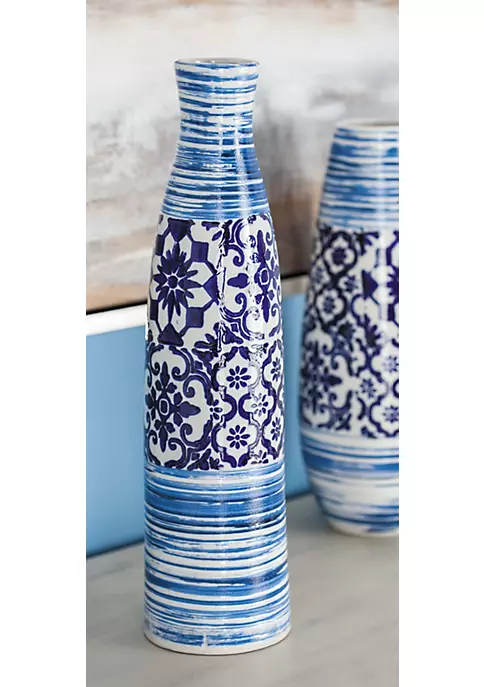 A coastal inspired space is built around the idea of a laid-back, carefree vibe. This item is made of a solid chinaware material for durable quality. This features a blue finish with some light blue and white accents. This blue Chinaware vase features an elongated cylinder shape and a stunning floral pattern at the center. Vase measures 19″ x 5″ x 5″ and weighs 1.9 lbs