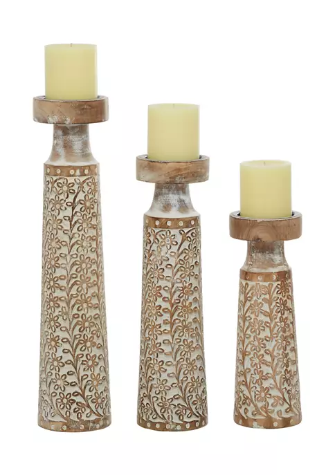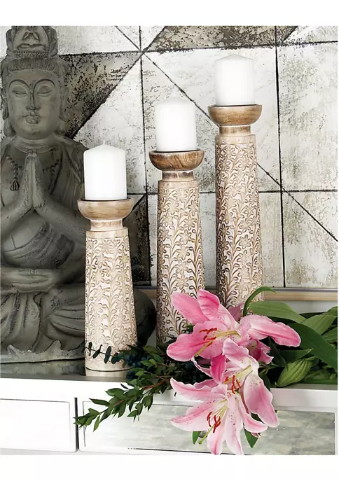 Hot Sale 💯 Traditional Mango Wood Candle Holder – Set of 3 by Monroe Lane 🛒