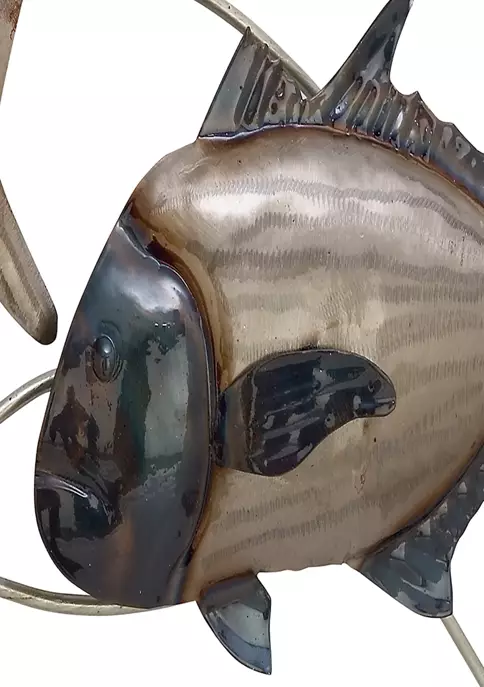 A coastal inspired space is built around the idea of a laid-back, carefree vibeThis school of fish wall decor is a creative mold of solid ironThis metal fish wall decor carries two-toned black, gray, and brown sea creaturesThis iron wall decor showcases a school of fish as the focal point of its frameless designItem measures 45″L x 2″W x 24″H, weight: 6.38 lbs.
