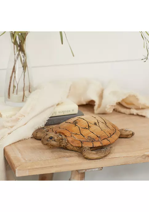 Designed with a coastal inspired theme for a calming and relaxing vibePolystone construction ensures product durabilityComes in a textured oak brown finish with black highlightsTable decoration that highlights a sea turtle sculpture constructed of quality polystone, this accent piece features sea turtle decor with detailed head, shell, and flippersMeasurements: 11″L x 9″ W x 3″ H and weighs 1 lbs
