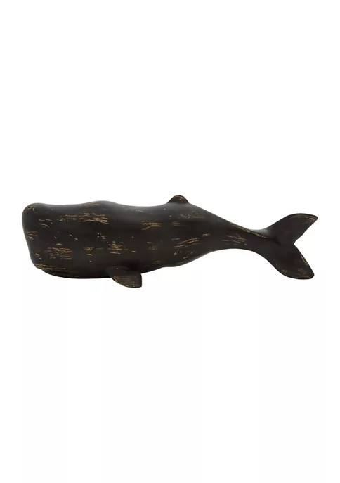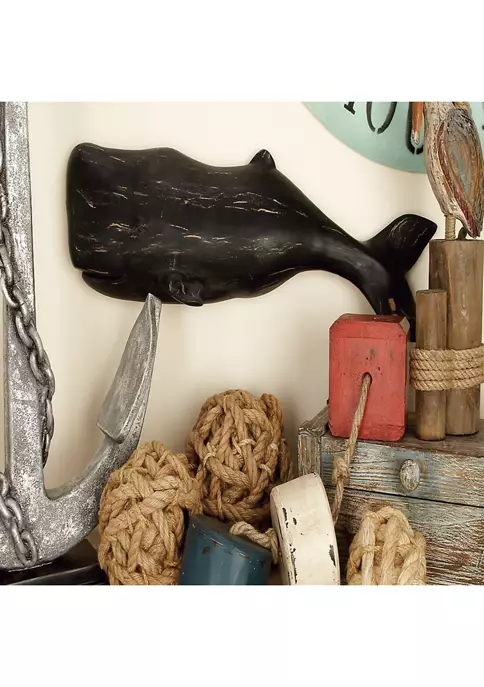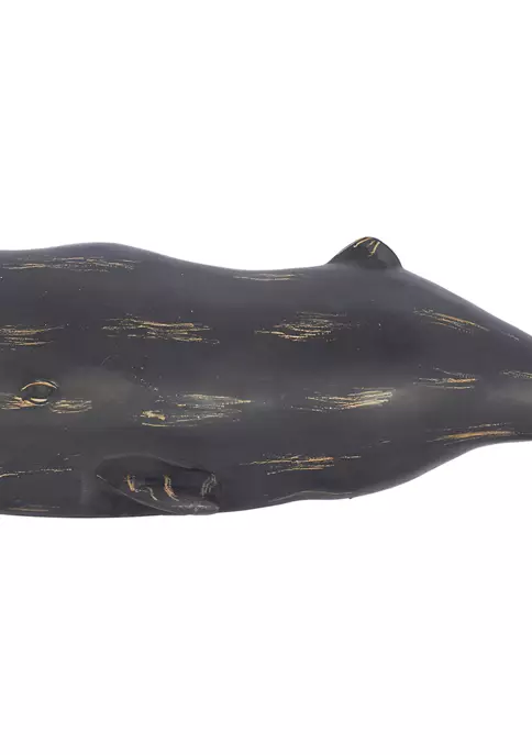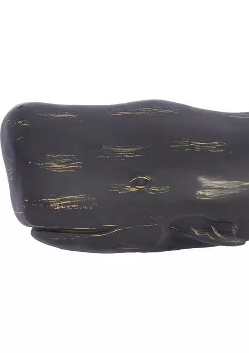 Designed with a coastal inspired theme for a calming and relaxing vibeThe whale’s body is made from polystone for a durable yet lightweight designA distressed black finish gives the whale a bold but minimalistic aestheticThe plaque features a tail and fins for a realistic touchThe item measures 26″L x 6″W x 8″H and weighs 5.6 lbs