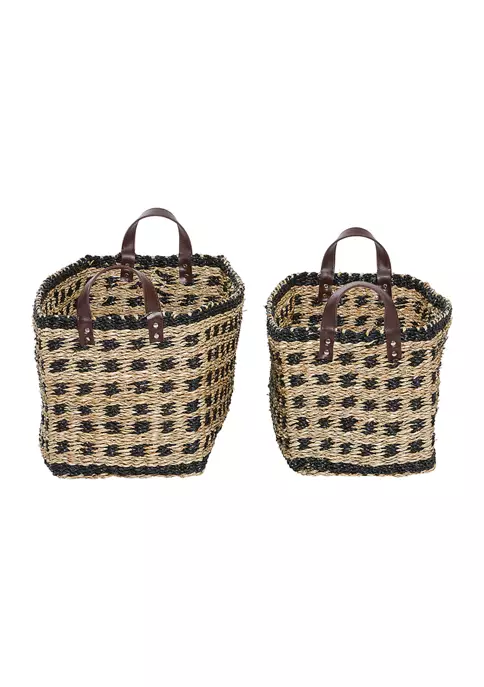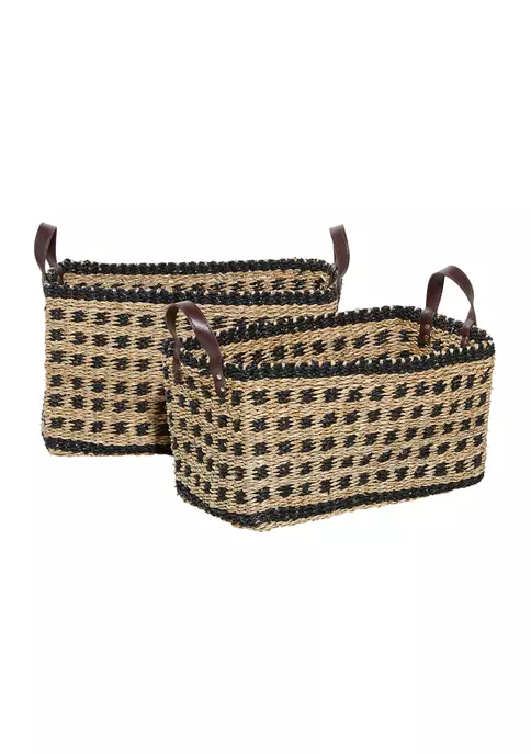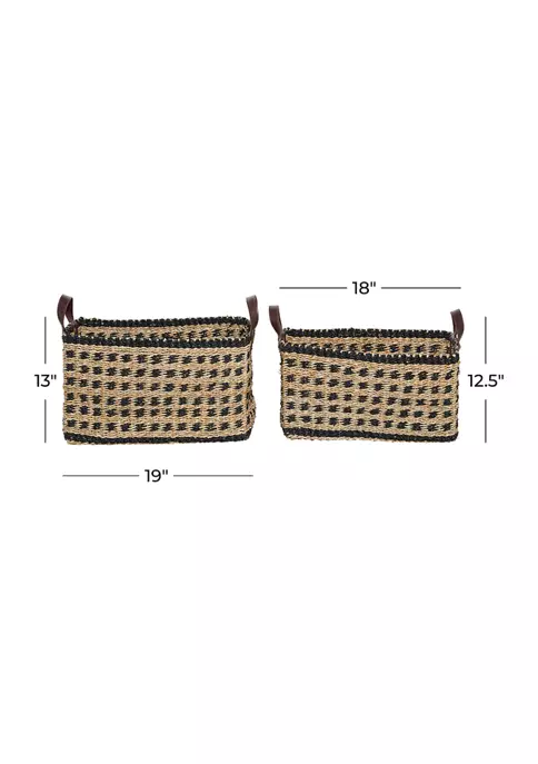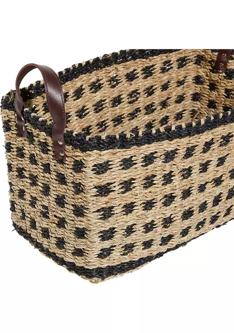 A coastal inspired space is built around the idea of a laid-back, carefree vibe. These coastal-themed rectangular baskets are crafted with woven seagrass. They feature caramel and chocolate brown woven patterns. Each basket is designed with 2 chocolate brown handles. This set measures 19″L x 13″W x 13″H, 18″L x 12″W x 12″H