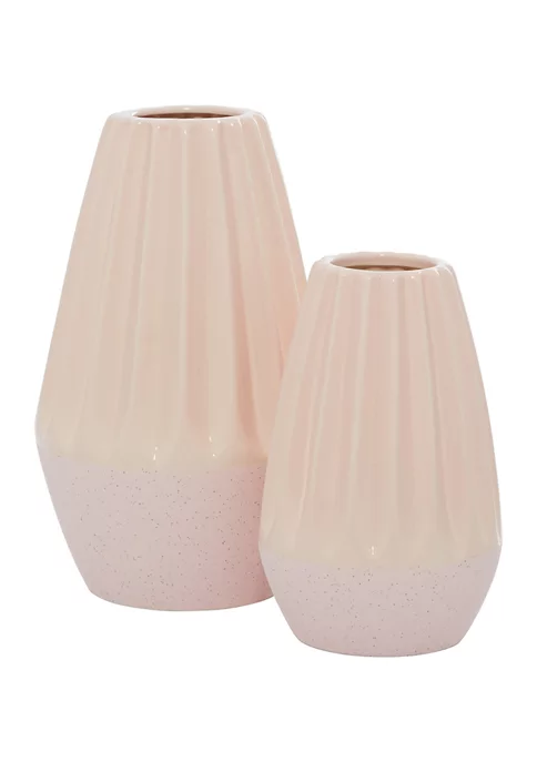 Ideal decor that works best in contemporary themed homes. Solid ceramic stoneware vases with a glossy opaque pink uppers with matte pink speckled base. Rubber stoppers prevent scuffing and sliding. Pink vases measure 6.5″L x 6.5″W x 10.5″H, 5″L x 5″W x 8″H and collectively weigh 5 lbs.
