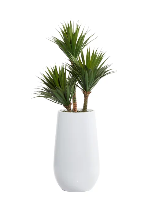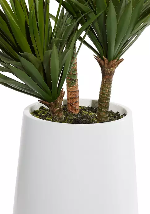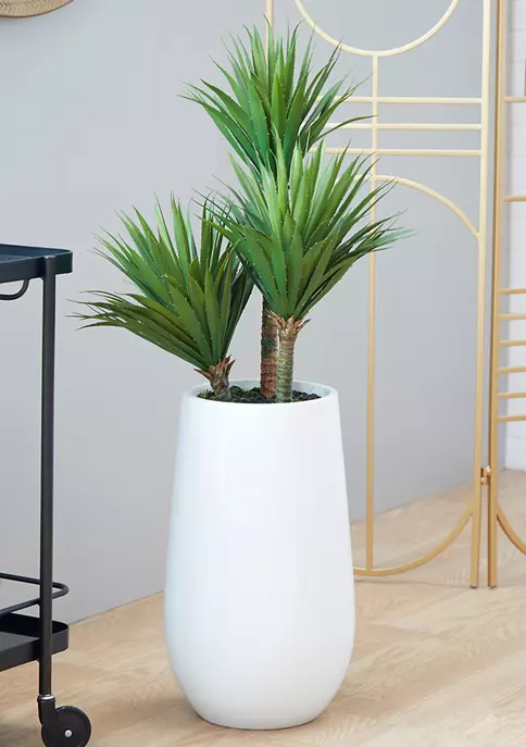 A contemporary style offers neutral elements and basic forms with a bold design. This artificial indoor plant is crafted using polyethylene leaves, cement and Styrofoam filler, and a fiberglass planter. This artificial succulent plant carries matte green leaves, brown stems, and a glossy white planter. This artificial foliage features a floor plant size and a natural shrub arrangement in a cylinder pot. Potted artificial shrub measures 20″L x 21″W x 42″H and weighs 15 lbs