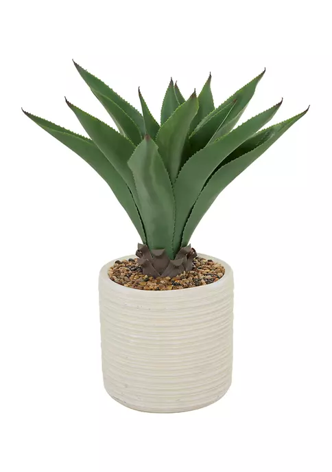 A contemporary style offers neutral elements and basic forms with a bold design. This artificial home decor floor plant is made of pure polyethylene material. Our large artificial plant decor features a green and brown plant body with mixed colored stones and a textured white finished pot. The artificial aloe vera plant showcases a pineapple head inspired plant structure with natural mixed stone fillers and a large round polyethylene pot with a horizontal stripe-carved exterior pattern. Item measures 27″L x 27″W x 31″H and weighs 18 lbs