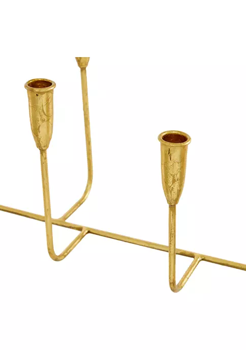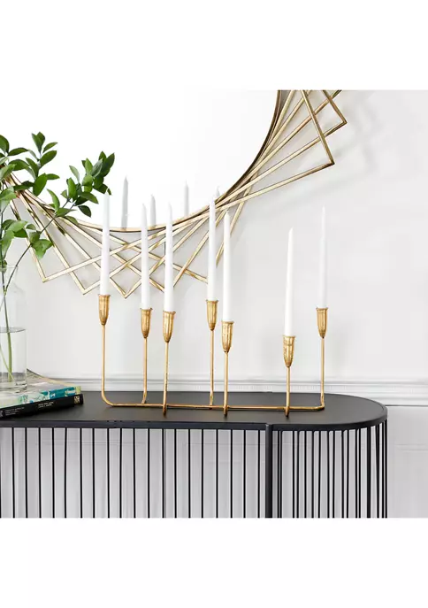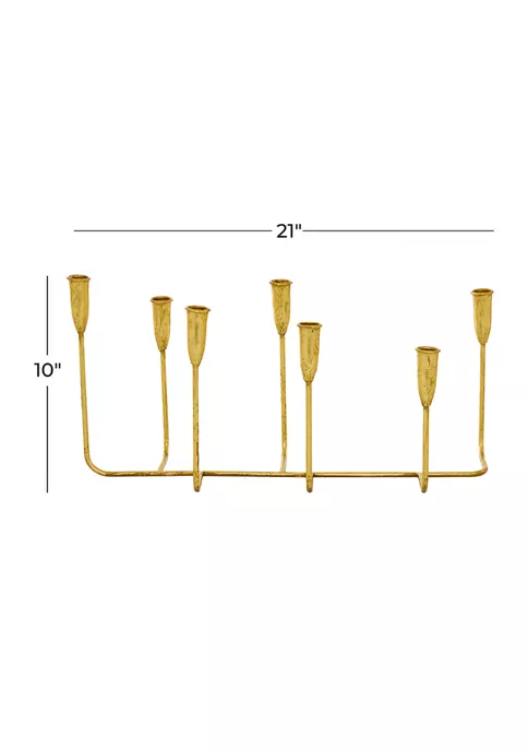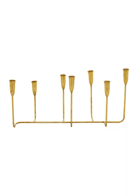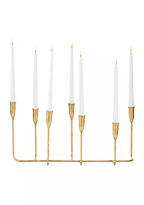 Ideal decor that works best in contemporary themed homesThis gold candelabra is made of solid iron metalThis horizontal candle holder features solid iron bar with a metallic gold finishAn opulent candle holder with 7 cup for taper candles showcases a slender frame with unique designEach candle holder measures 7-stick candle holder measures 20.6″L x 7.5″W x 10″H and weighs 1.5 lbs