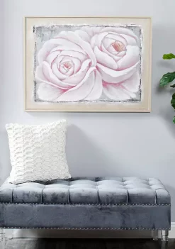 Buy โ๏ธ Large White and Pink Roses Acrylic Painting on Canvas in Wood Frame by Monroe Lane ๐