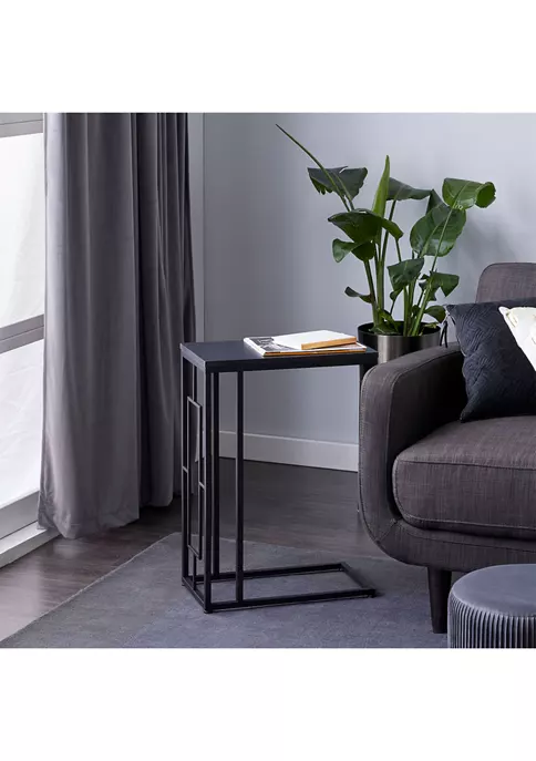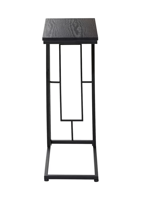 Ideal decor that works best in contemporary themed homes. This elegantly chic side table is crafted with a unique C-shape design and is made of wood and high quality iron material Features a delicately crafted, smooth black wooden body & a polished jet black-finished iron frames. This lavish home decor showcases an artistic twist to side tables, with its elegantly crafted C-shaped rectangular table exterior and a Cathedral-like, open style leg design. Measurements: 10.25″L x 18.5″W x 26″H and weighs 6.6 lbs.