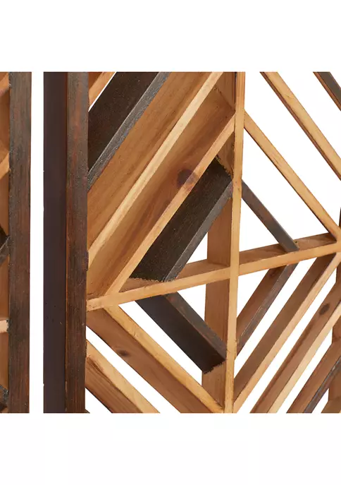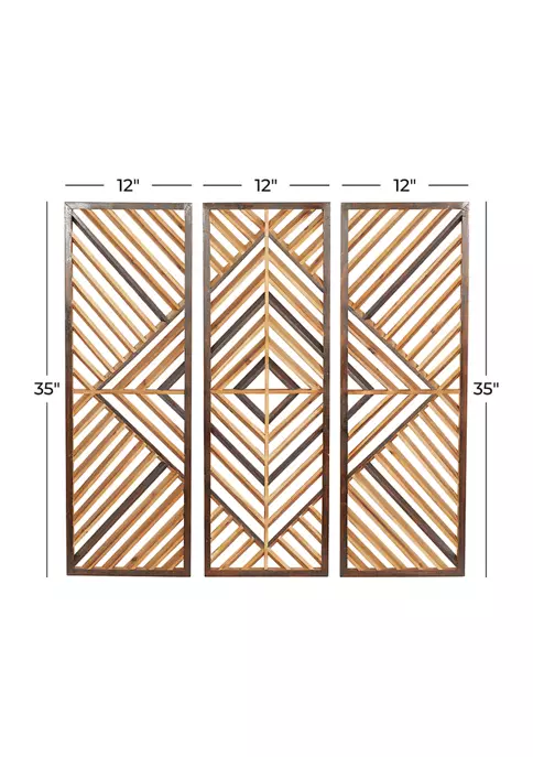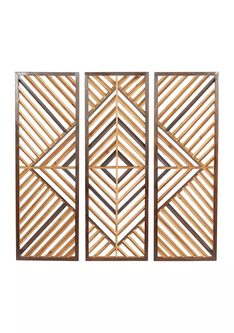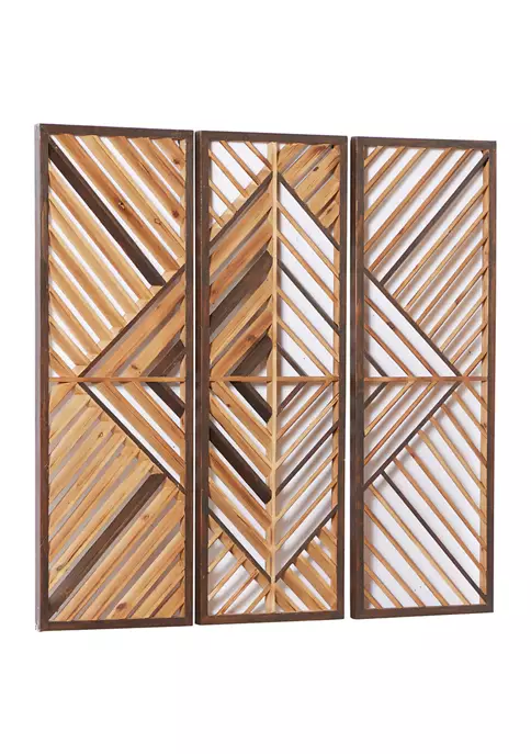 Ideal decor that works best in contemporary themed homes. Feature wall decor made of a solid wood. Features a natural brown border and brown geometric design. The best way to maximize your wall space and a touch of “pizzazz” to your home is wall dรฉcor. Item measures 35.38″ x 11.88″ x 1.00″, and collectively weights 2.34 lbs.