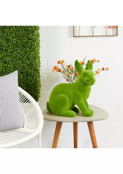 Crafted to offer any country cottage themed home a final touch, with an elegant rustic appeal. A country cottage rabbit sculpture crafted of solid and smooth magnesium oxide that can stand the test of time. A charming rabbit garden sculpture that comes in a green finish that goes well with outdoor areas. Featuring a magnesium oxide garden sculpture highlighting a grass inspired rabbit figurine in a sitting position with intricate facial and body characteristics. Item measures 8″L x 15″W x 16″H and weighs 7 lbs