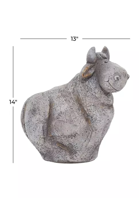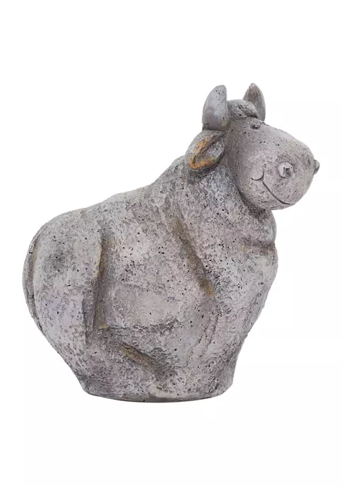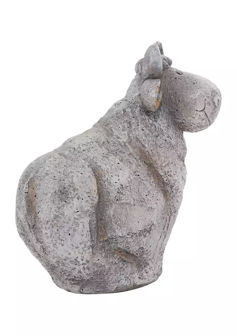 Designed with a warm, relaxed country feel for a wholesome atmosphere. This cheerful figurine is made of solid polystone material. A textured gray finish allows it to blend in with any outdoor space. The cow has a contented expression, which adds a little personality to your space. Measurements: 13″L x 7″W x 14″H, weight: 1.3 lbs