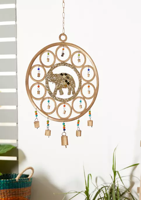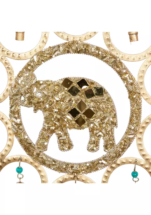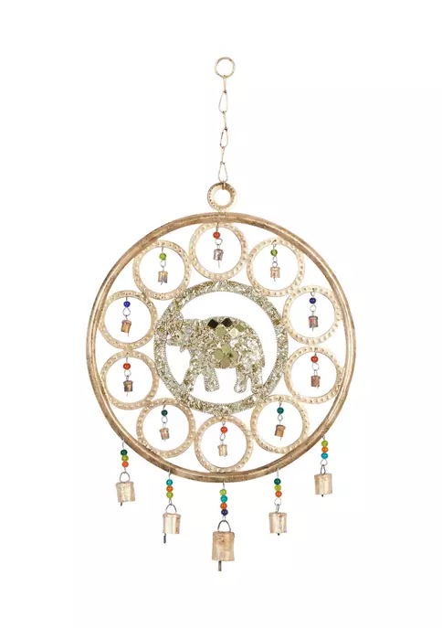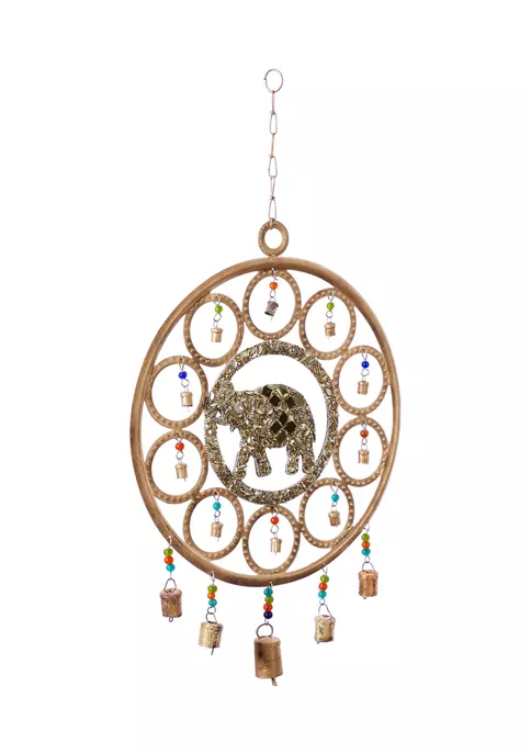Express your personality with eclectic design and transform your space into a diverse mixture of colors and patterns. This design is made of solid iron and gorgeous glass beads. A gold finish and multicolored beads come together to create an eye-catching display. Made of solid iron and gorgeous glass beads featuring striking elephant dreamcatcher bell. Measurements: 14.5″L x 1″W x 27″H, weighs 1.5 lbs