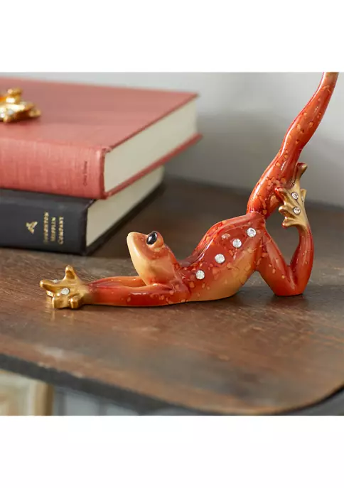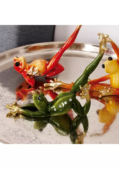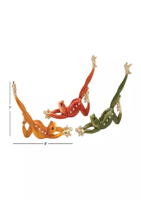 Eclectic design lets your personality shine in your homeThis novelty sculpture set is made from polystone materialsThis unique set comes in a multi-colored finish to highlight its quirkThis sculpture set features 3 polystone frogs in a diving position with one hind leg raised up highEach item measures 6″L x 1″W x 7″H and weighs 0.66 lbs