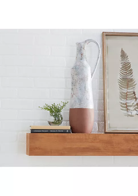 Enhance your farmhouse inspired home with classic style and a touch of cozy appeal. Solid ceramic stoneware vase. Bubbled white glaze with stone finish throughout the top, matte rust brown base and interior. This ceramic white vase features a lekythos-inspired shape with half-tipped design. Farmhouse decor vase measures 6″L x 7.5″W x 23″H and weighs 6.5 lbs