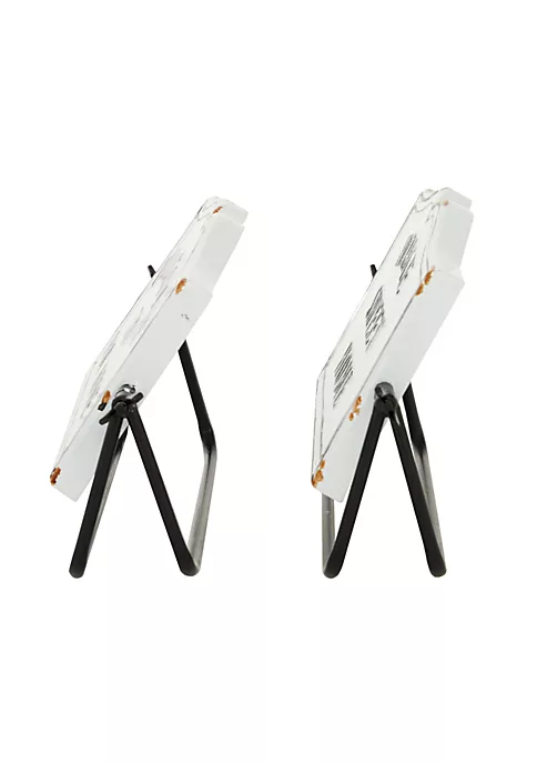 Enhance your farmhouse inspired home with classic style and a touch of cozy appeal. Made of a solid iron construction. Comes with a stylish, matted black, ‘swing-style’ standee. Features 2 identical, vintage-inspired signs: “welcome to our home” and “home sweet home”. Measurements: 2.45”L x 10.7”W x 7.05”H, 2.3”L x 10.85”W x 6.9”H, weight: 0.6 lbs, 0.58 lbs