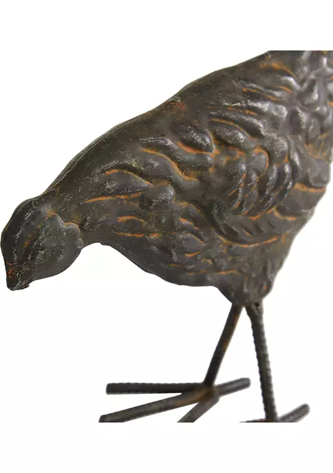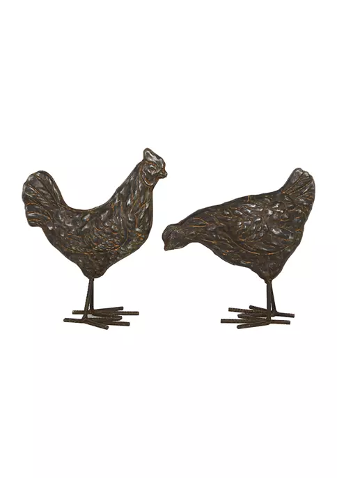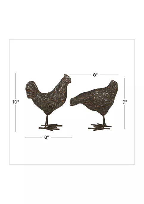 Designed with a farmhouse style for that homey feelingThese table displays were molded from ironThis item highlights a medley of ash silver and daisy white distressed finishThis table décor set features rooster and hen with detailed feather patternsItems in this set measure 10”L x 6”W x 14”H, 12”L x 6”W x 14”H and collectively weigh 2 lbs