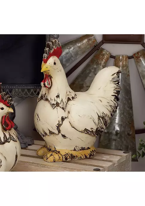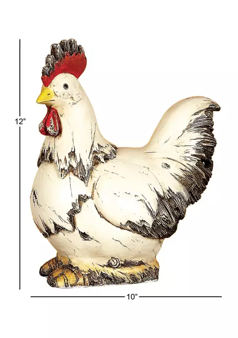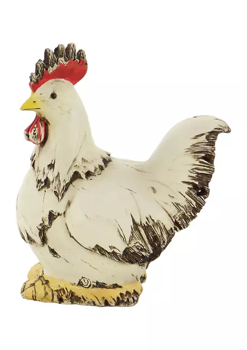 Enhance your farmhouse inspired home with classic style and a touch of cozy appeal. Charming sculpture is made of solid polystone material. Distressed white finish also features red, yellow, and brown highlights. Chicken-shaped decor has a flat molded base, and details such as a red-finished wattle and comb design give the chicken a natural appearance. Measurements: 11″L x 5″W x 12″H, weight: 3.61 lbs
