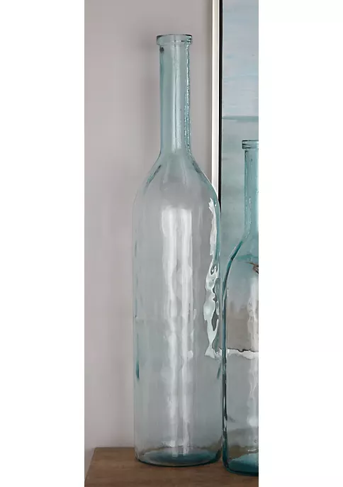 Enhance your farmhouse inspired home with classic style and a touch of cozy appeal. This versatile floor vase is crafted with solid glass material. This farmhouse bottle floor vase showcases a clear blue glass finish. This floor vase features a classic glass bottle design with a long neck and a transparent cylinder body. Measurements: 8″L x 8″W x 40″H and weighs 15.21 lbs