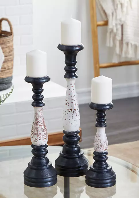 Hot Sale 💯 Traditional Mango Wood Candle Holder – Set of 3 by Monroe Lane 🛒