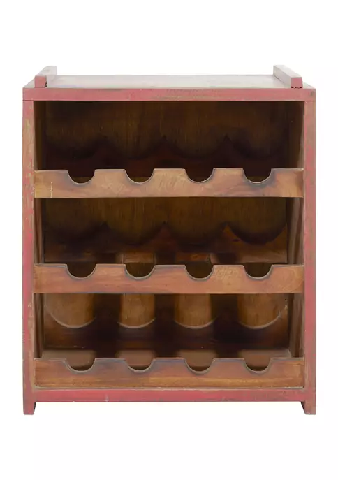 Crafted to offer any farmhouse or country cottage themed home a final touch with a cozy rustic appeal. This wine rack are designed with a solid wood structure. Features distressed barn red exterior finish. Furnished with 3 tier racks for a total of 12 bottle holders. Wine rack cabinet that measures 14″L x 13″W x 16″H and weighs 11.40 lbs