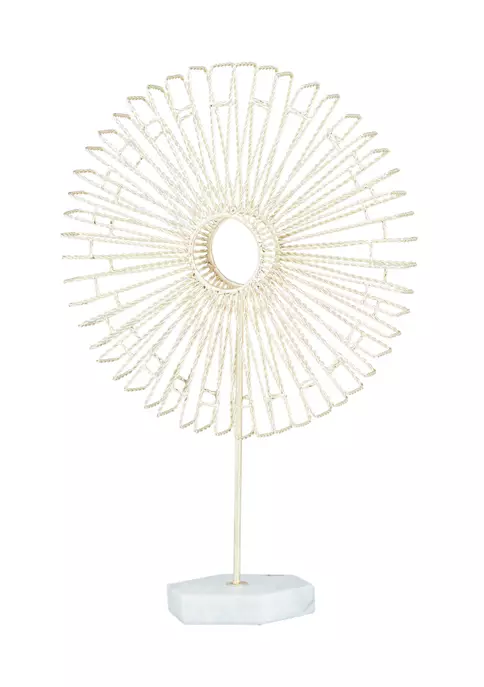 Elevate your space and add a touch of luxury with this glam inspired piece. This home decor is crafted with metal and marble for a solid and durable form. This table decor highlights a medley of metallic gold and pastel blue finish. Entwined wires form the flower-inspired silhouette of this art decor with a geometric platform base. Item measures 13″L x 5″W x 19″H and weighs 3 lbs