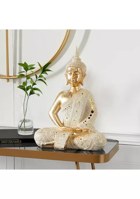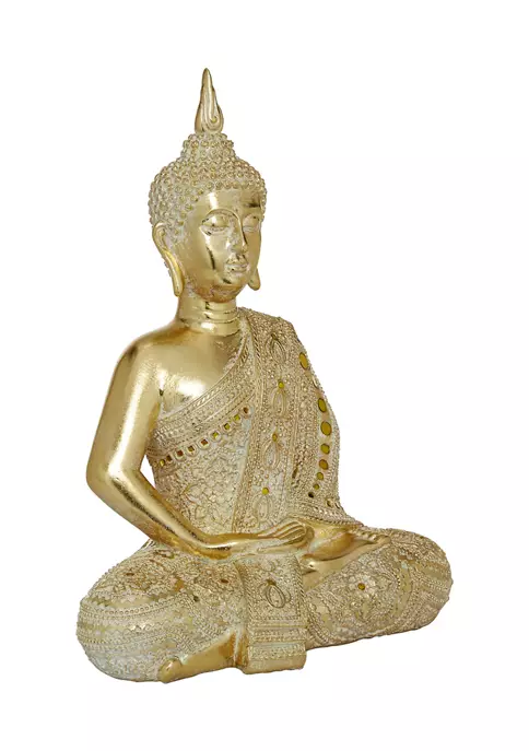 Create a calming and peaceful atmosphere with this buddha sculpture ideal for neutral color background. An artistic display to showcase your personality and enhance the look of any open table top space. An artistic display to showcase your personality and enhance the look of any open table top space. Item ships in 1 carton. Suitable for indoor use. Glam style.