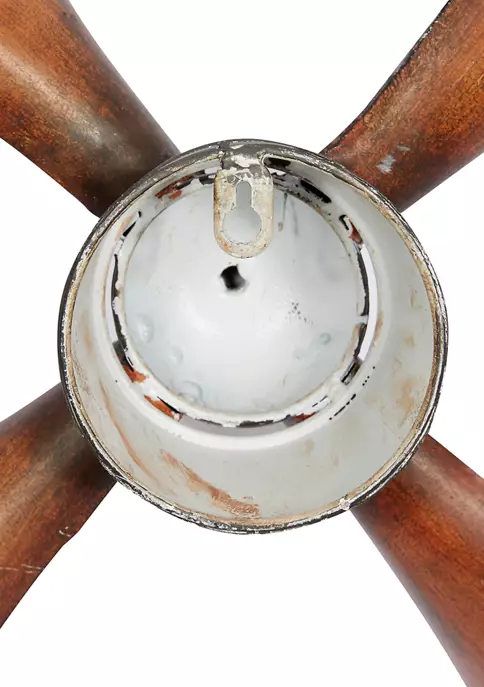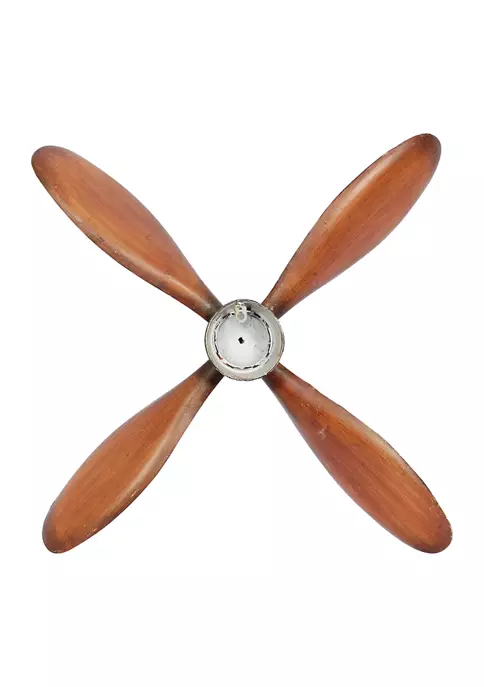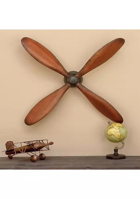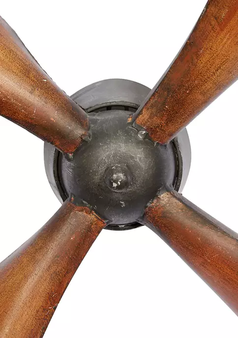 Features an industrial inspired design to make your space uniqueBoth the center hub and blades of this plane propeller wall dΓ©cor were crafted from ironThis metal propeller wall dΓ©cor features a glossy brown wood finish on tapered metal bladesThis nautical propeller wall decor features four brown blades and a gray cylinder hubItem measures 32″L x 5″W x 32″H, weight: 3.33 lbs.