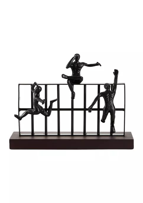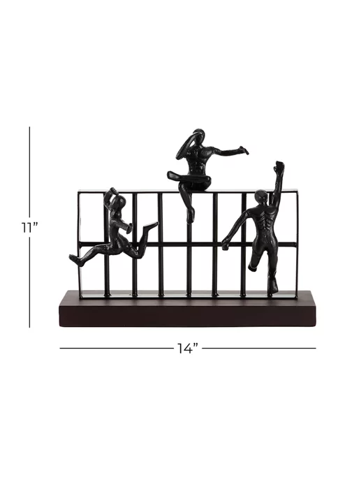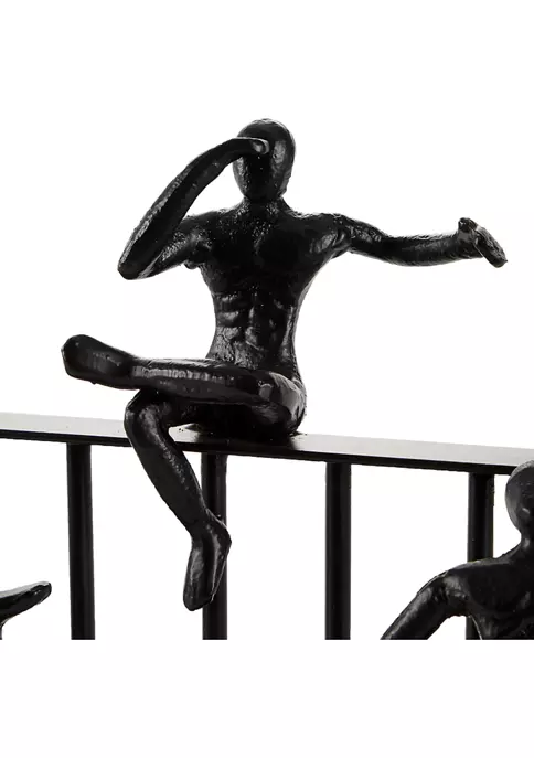 Ideal dΓ©cor that works best in contemporary themed homes. This eccentric sculpture is a marriage of metal and wood that highlights an ebony black overall sculpture finish with a soft sheen. This human in-action sculpture functions as table dΓ©cor and paperweight.