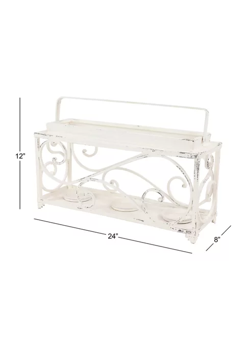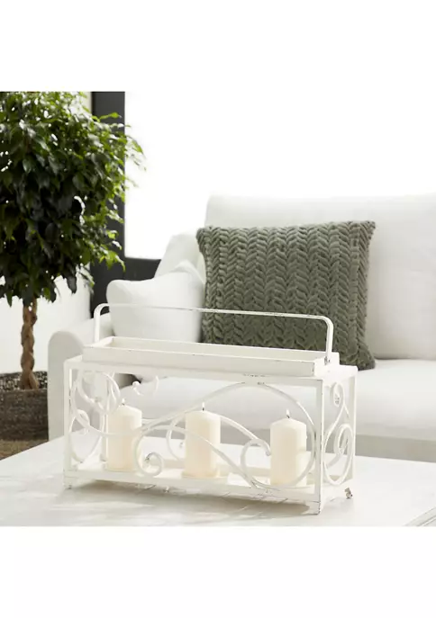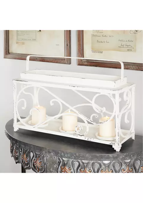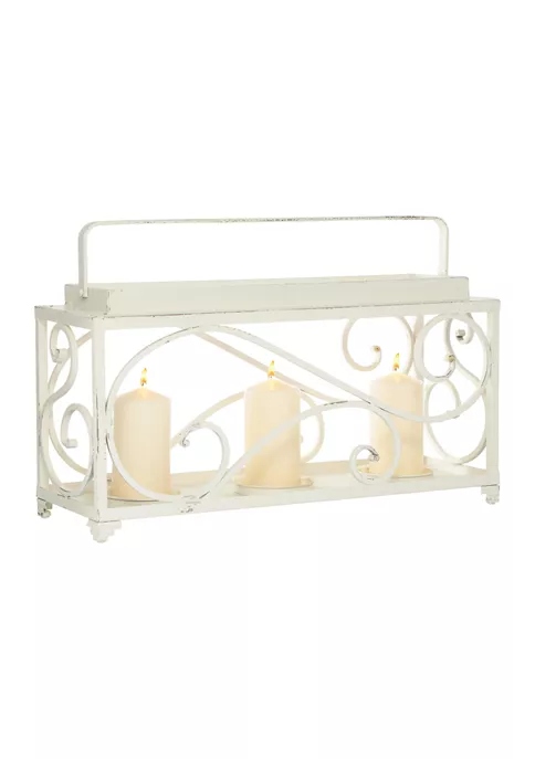 Large candle holder measures 24 in L x 8 in W x 12 in H and weighs 4.5 lb