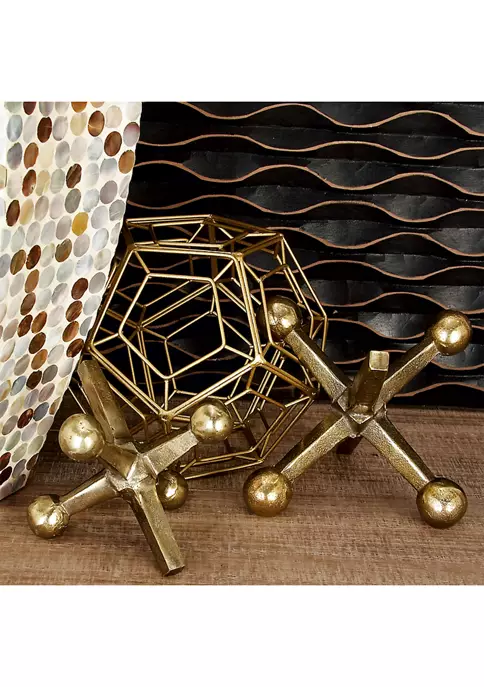 Modern style inspired with a minimalist design with clean lines and angular structuresMade of a solid aluminumFeatures a textured metallic gold finishesJacks table décor, a fun sculptures with detail all the way aroundMeasures 6″L x 6″W x 4″H, 8″L x 8″W x 5″H and weighs 2 lbs