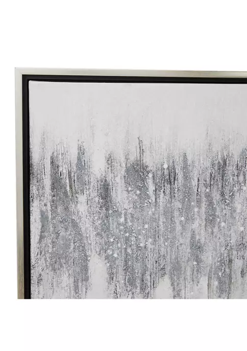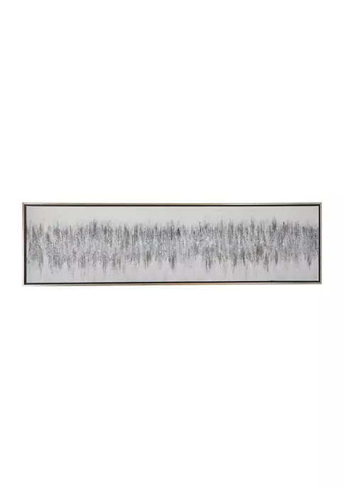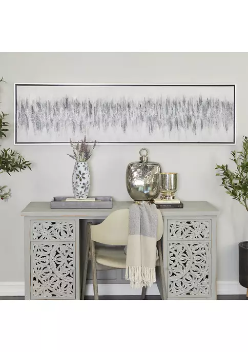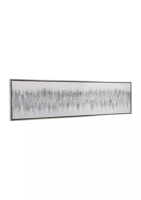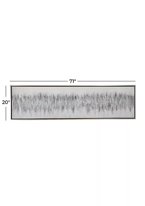 Features a modern style inspired by a minimalistic design with clean lines and angular structures. A framed canvas art crafted of solid wood, polystone, and canvas materials. An elegant canvas wall art featuring a gray finish that suits most interior designs. Modern wall decor highlighting a black and white rectangular frame with an elegant textured painting of gray abstract design. Item measures 70.80”L x 1.20”W x 19.50”H and weighs 5 lbs