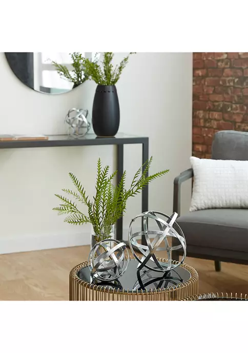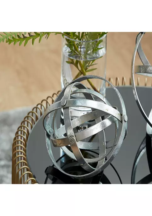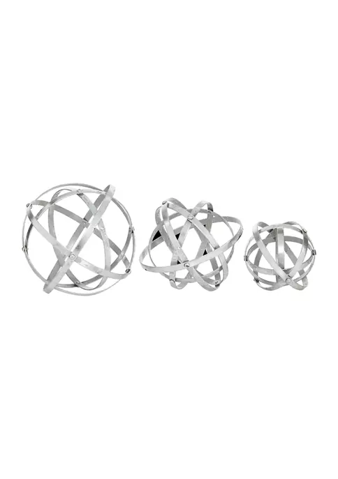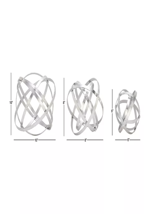 Modern style inspired with a minimalist design with clean lines and angular structuresCrafted of a solid iron for durabilityFeatures matte silver finishMonochrome metallic silver finish over the layers of iron bars forming nested geometric sculpturesEach item measure 10”L x 10”W x 10”H, 8”L x 8”W x 8”H, 6”L x 6”W x 6”H and collectively weigh 3.3 lbs