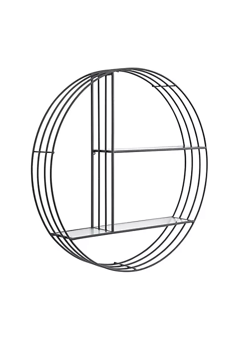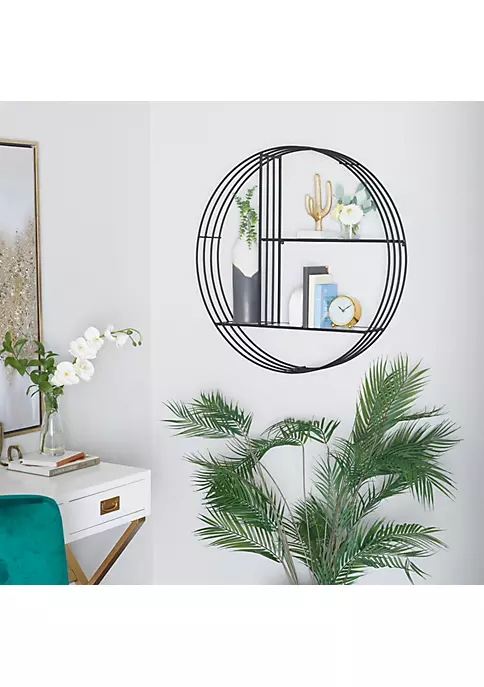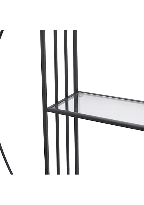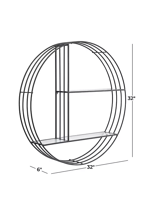 Features a modern style inspired by a minimalistic design with clean lines and angular structures. This home decor is crafted with metal and glass for a solid and durable form. This wall shelf highlights a black frame finish with faintly tinted shelves that adds character to this home Decor. Three layers of bar frames forms this wall shelf and decked with glass shelves that altogether creates a stunning and eccentric look. Each item measures 32″L x 6″W x 32″H and weighs 10 lbs
