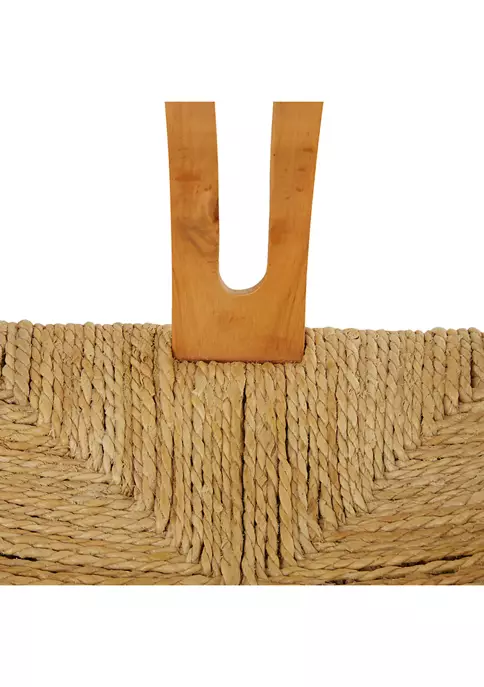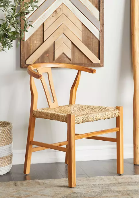 Modern style inspired by a minimalistic design with clean lines and angular structures. Modern accent chair made of robust and natural teak wood. Soft sheen black frame with natural wood brown seat highlights this accent chair. Teak wood accent chair featuring a black wooden structure furnished with exposed wood grain, arched backrest, 4-legged base with extra support, and comfortable knotted seat. Item measures 20″L x 21″W x 29″H and weighs 11 lbs