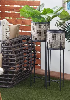 Brand new โจ Contemporary Metal Planter – Set of 2 by Monroe Lane ๐