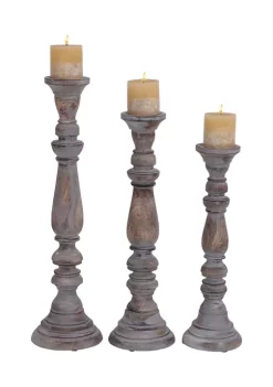 Budget π Traditional Mango Wood Candle Holder – Set of 3 by Monroe Lane π₯