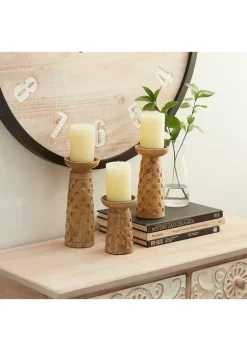Budget 𧨠Coastal Wood Candle Holder – Set of 3 by Monroe Lane β