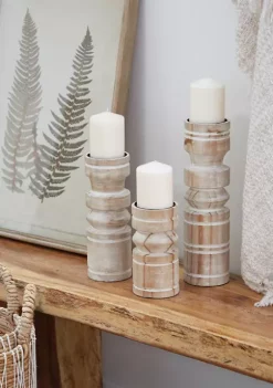Buy β¨ Coastal Wood Candle Holder – Set of 3 by Monroe Lane π