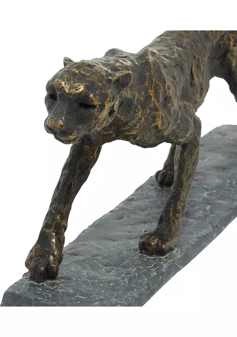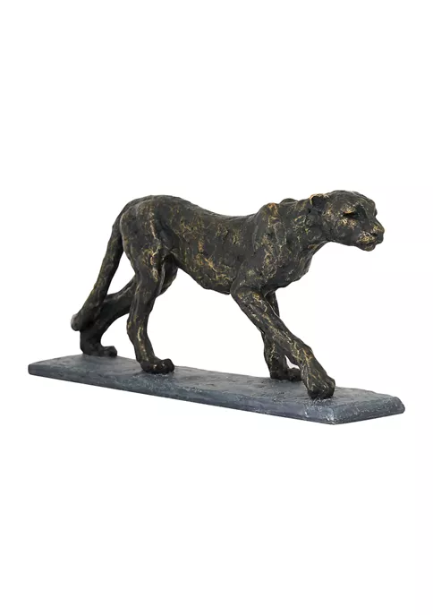 Rustic style designed for a warm and cozy interior. This charming leopard tabletop and shelf figurine is a creative mold of stone resin while the rustic finish of this black animal figurine gives it a contemporary feel. Ridges create both texture and realistic touch that is ideal on any sleek surface.