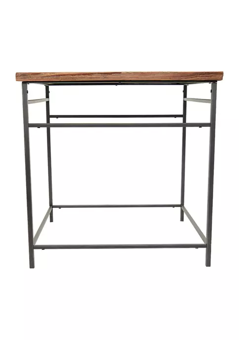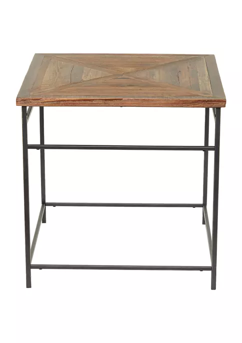 A rustic inspired piece is natural in design, and fills the home with a relaxed and warm ambiance. Iron and fir wood give this accent table a solid and durable form. Natural wood brown finish highlights the tabletop of this rustic accent table with black stand. Metal and wood side table features double iron 4 legged structure and a wooden top. Item measures 24″L x 24″W x 24″H and weighs 17 lbs
