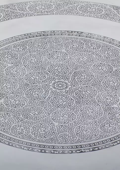 A spacious table top with a unique design offers an eye catching display from every angle. Useful and elegant, coffee tables are more than just a pretty piece of furniture in front of your couch. Achieve a elegant and compact indoor concept with this shimmering coffee table furnished in your living room or home office corners. This item ships in 1 carton. Suitable for indoor use only. Maximum weight limit is 100 lbs.. Made in India. Traditional style.