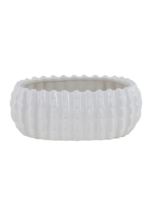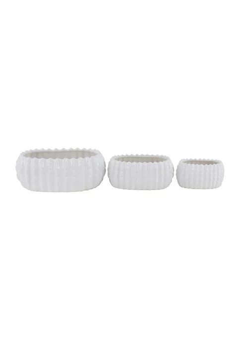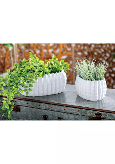 A classic and timeless style of design for your traditional home setting. A reliable construction of stoneware was used in crafting these indoor planters with no drainage holes. An all-white exterior with a glossy finish creates a look and feel of classic affluence on these planters. Each piece is oval in shape, decorated with vertical ribbings, and fits perfectly on tables and shelves. Item measures 17โL x 6โH, 13โL x 5โH, 8โL x 4โH, weight 19.15 lbs