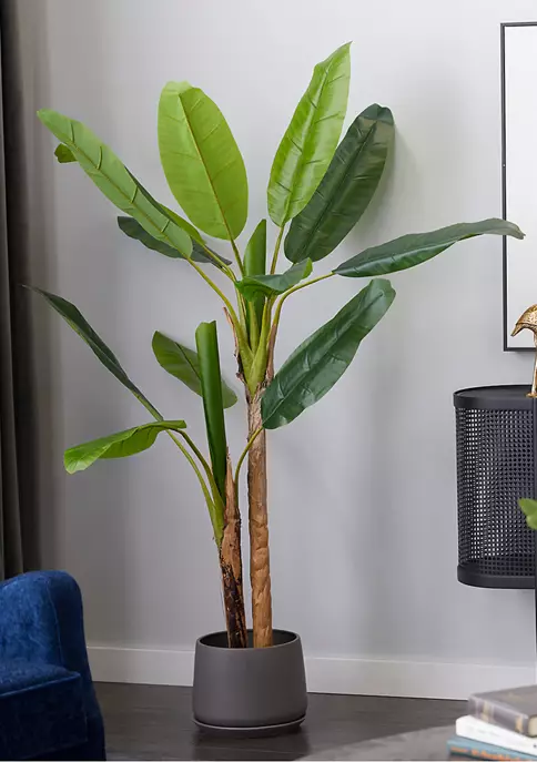 A classic and timeless style of design for your traditional home setting. This artificial foliage is crafted using polyethylene and a plastic planter. This artificial banana tree carries glossy green leaves and stems. Decorative foliage is an artificial copy of a Strelitziaceae tree. Plant measures 49″L X 36″W 64″H; and weights 6 lbs
