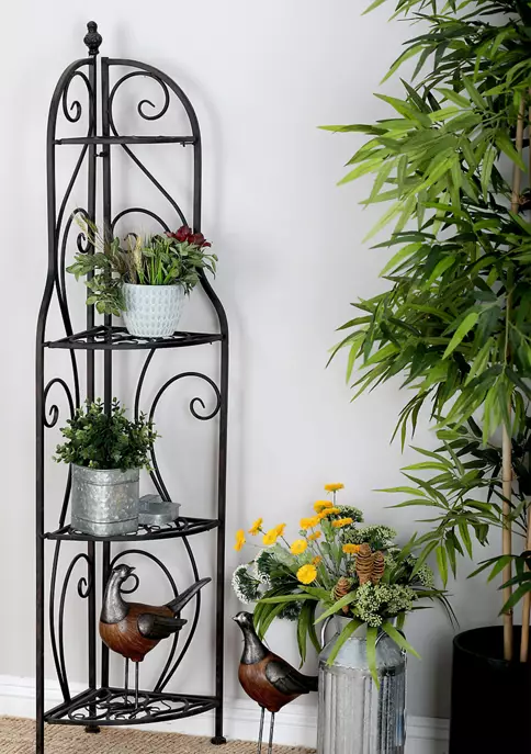 A classic and timeless style of design for your traditional home setting. The rack’s solid iron frame gives it a long-lasting quality. A matte black finish allows for versatile decorating options in traditional- or farmhouse-style settings. Four tiered shelves give you space to display plants and other Decor. The rack measures 17″L x 11″W x 60″H and weighs 10 lbs